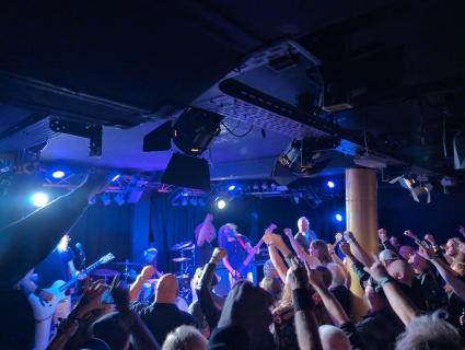 Dort hatten wir zwar schon Lady Beast verpasst, bekamen den astreinen Auftritt von High Spirits aber in Gänze mit. Schon faszinierend, wie viele geile Songs man mit ein paar wenigen entscheidenden Zutaten im Happy-Hardrock-Bereich schreiben kann. Chris Black weiß einfach, wie's geht. Ebenfalls sehr fein neulich an gleicher Stelle montags die Show von Blitzkrieg. Brian Ross lässt es sich auch mit 70 und schütterer Kauleiste nicht nehmen, durch die Clubs zu tingeln, coole Ansagen zu machen und einfach geil zu singen. Möge er noch etliche Jahre durchhalten.