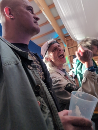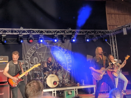 Am Wochenende darauf war es endlich soweit, wir schafften es erstmals zum Burgbrand. "The home of Metal and Stoner" klingt ja schon nach einem guten Motto, das pittoreske Festivalgelände liegt ziemlich nah, allein die headbangersche Zermürbung verhinderte bisher einen Besuch. Nun sollte wenigstens am Samstag unsere Anwesenheit zum Tragen kommen, schließlich lockte ein erlesenes Billing. Wir richteten uns halbgemütlich ein auf dem heimeligen Campingplatz, erklommen den Berg zur Burg, und fanden ein schickes, kleines Festivalgelände vor mit allem, was man so braucht. Der Getränkekauf bot nette Einblicke, die Verpflegung war schmackhaft und die Bühne erstaunlich weitläufig. Man fühlte sich jedenfalls gleich wohl, zumal ja auch die Mucke für Plaisir sorgte. Das erlesene Abendprogramm hatte es wirklich in sich: Undertow, Smoulder, Funeral Fukk - wann bekommt man im Schatten der mittelalterlichen Ruine schon solch geile Bands präsentiert? Da faucht der Aal! Wir fanden es jedenfalls spitze, auch die Aftershow im DJ-Zelt. Termin für 2026 ist fest ins Auge gefasst.