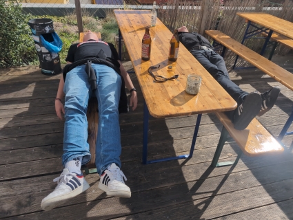 Pünktlich zum Start der Biergartensaison hat es unsere Stammtisch-Community arg dezimiert. Zugvögelchen Elke ist antizyklisch gen Süden abgezwitschert, so dass im Herzen Hersfelds nun eine fast wie ausgebombt wirkende Lücke klafft. Außerdem schmeckt der Fencheltee irgendwie schal und man muss sich selbst um die Kontrolle der Radler-Vorräte kümmern. Immerhin gab's am Abschiedsabend nebst Tränen noch ne geschmeidige Standardtanz-Einlage und einen ergiebigen Rundgang durch fast alle tauglichen Kneipen vor Ort. Jetzt dürfen sich Einheimische wie Touris am großen See über die neu hinzu gewonnene Attraktion freuen. Ride on, see you!